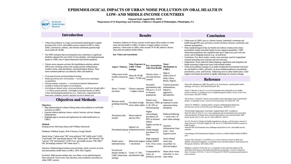 Edmond Appiah Children’s Hospital of Philadelphia] Epidemiological impacts of urban noise pollution on oral health in low- and middle-income countries]