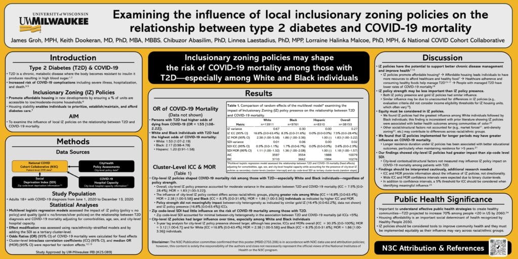 James Groh University of Wisconsin – Milwakee] Examining the influence of local inclusionary zoning policies on the relationship between type 2 diabetes and COVID-19 mortality]